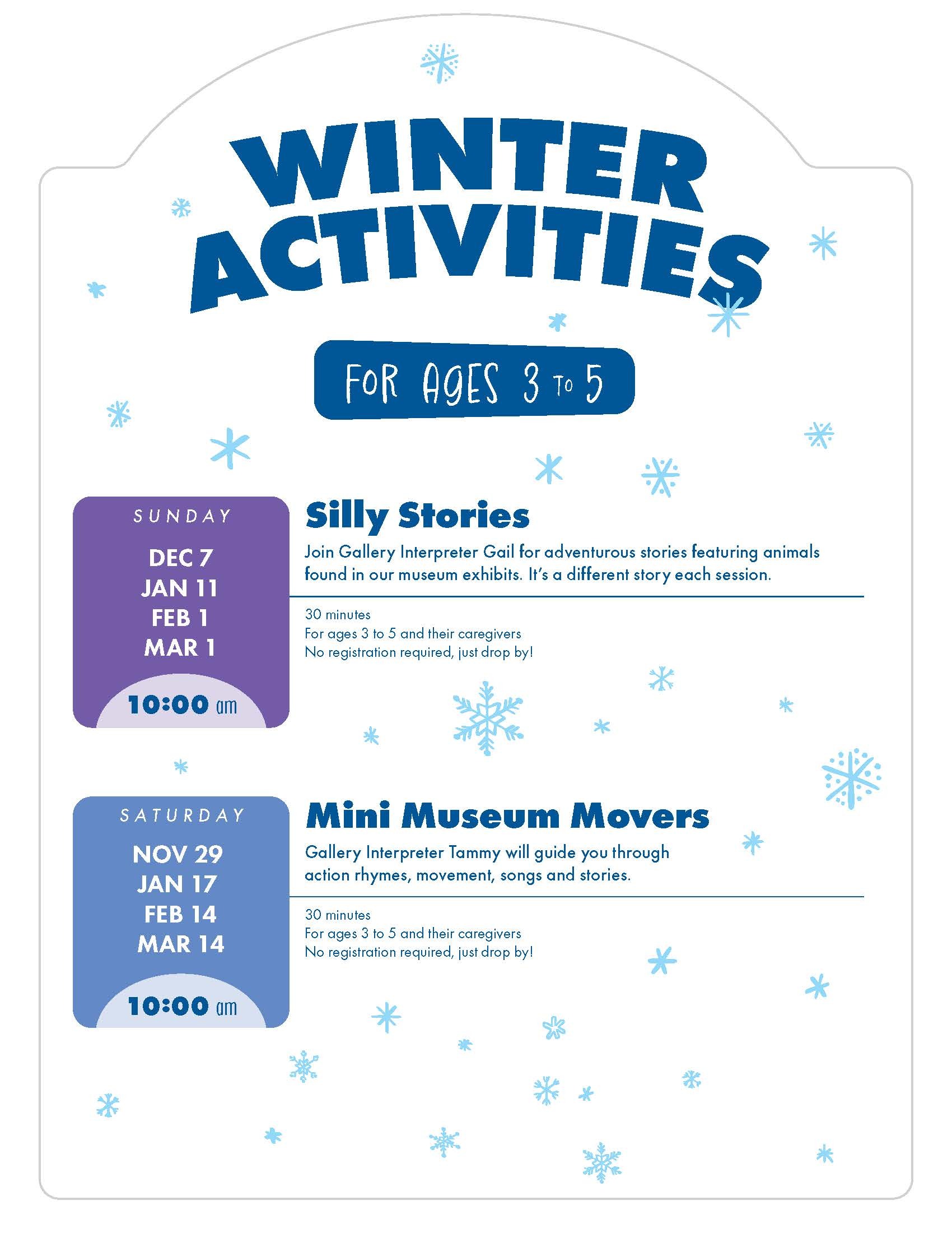 For ages 3 to 5 and their caregivers. No registration required, just drop by! Looking for more activities for 3 to 5 year olds? Click here.